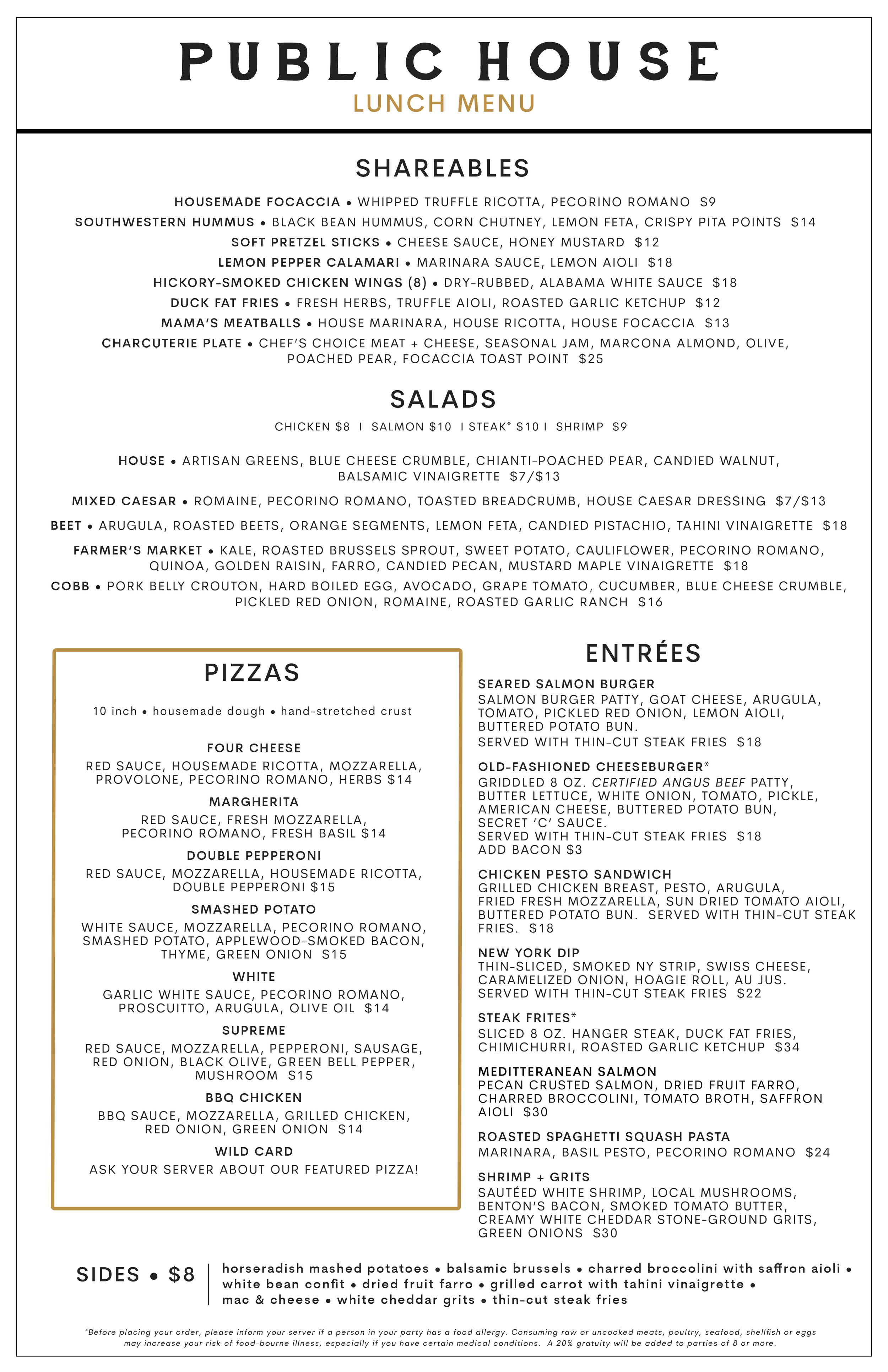 Pizza Menu is not available in Public House Dining Room or Patio.